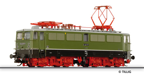 Elektrická lokomotiva E42 drah DR. Osvětlení dle jízdy červeně/bíle.
