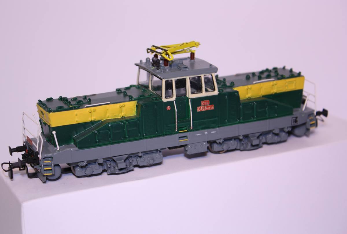 Elektrická lokomotiva řada E458 drah ĆSD, karosrie z odlitku, na mosazném pojezdu, osvětlení přepíná dle jízdy. Model je detailně propracován.