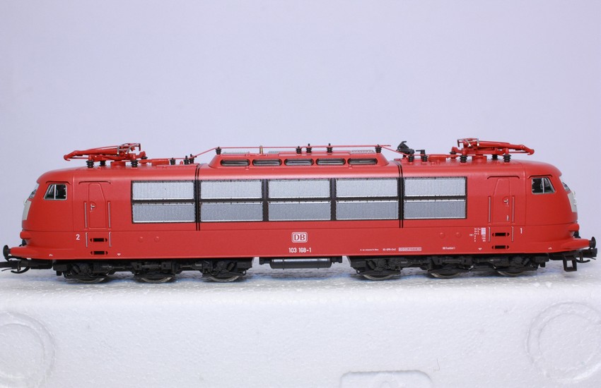 Elektrická lokomotiva řady 103, délka 161 mm. Dráha DB.příprava na digitál osvětlení přepíná dle jízdy.