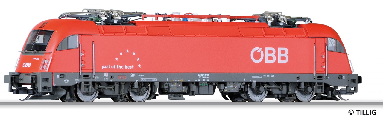 <p>Elektrická lokomotiva Rh 1216 drah OBB. Technické parametry: Příprava na DCC: Ano NEM 658 (Decoder PluX 12) Osvětlení: 3 bodé přepíná dle jízdy Spojení: šachta dle NEM 358</p>