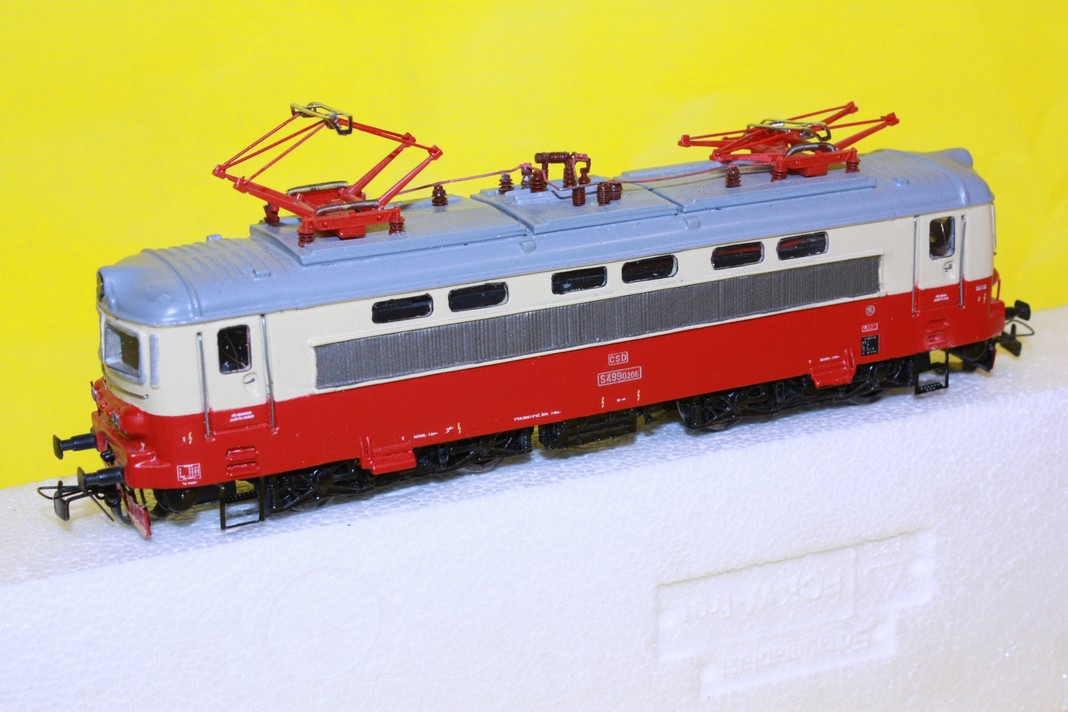 Elektrická lokomotiva ř.S499 ČSD. Model je z odlitku, posazen na tovární pojezd f. Roco s přípravou na digitál, osvětlení přepíná dle jízdy. Šachta NEM.