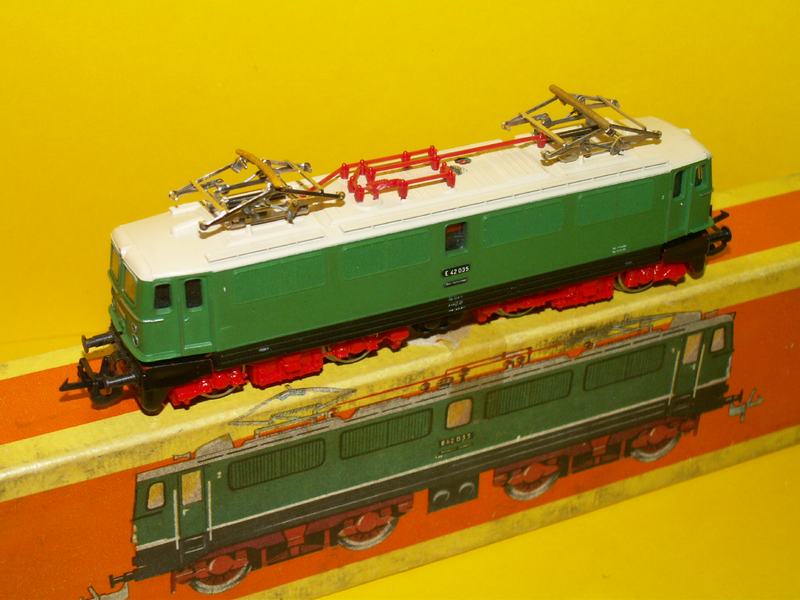 Elektrická lokomotivařady drah německých s krémovou střechou, lokomotiva má naháněny všechny nápravy proud lze odebírat bud z koleje nebo po přepnutí pantografem, model je čelně osvětlen.