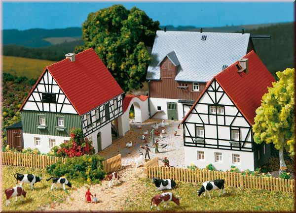 Zemědělská farma(vesnický statek). Hospodářská budova se zajímavým otevřeným přístupem. Rozměry: Obytná budova 1 kus 145x90x100mm Hospodářská budova 1 kus 95x90x100mm Stodola(kulna) 1 kus 115x100x100mm