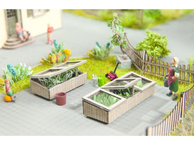 Stavebnice dvou skleníků, Laser-cut technologie. Rozměr: 4,0/2,6 cm x 1,6 cm, 1cm vysoký