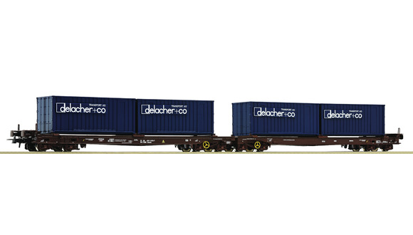 H0 - Dvojitý plošinový vagon s kontejnery, OBB / ROCO 76835