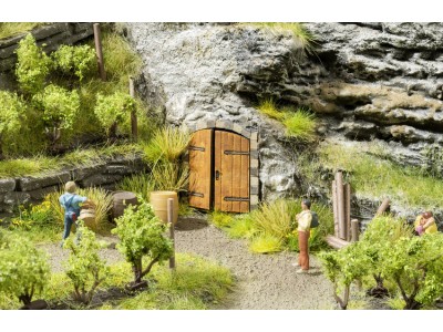 Stavebnice pěti kusů nebarvených, dřevěných vstupů do vinného skalního sklípku, Laser-cut technologie. Rozměr: 3 x 2,8 cm