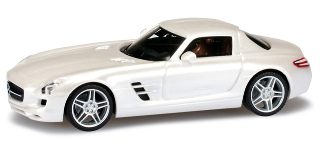 Model Mercedes-Benz SLS AMG, bílá metalíza.