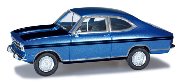 Hotový model Opel Kadett B Coupé Rallye Barva: modrá, černá Měřítko: 1:87