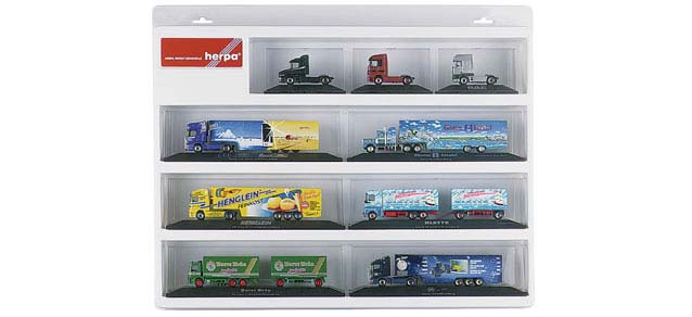 Vitrína na modely nákladních vozů a přívěsů, bílá (57cm x 45cm x 8cm)