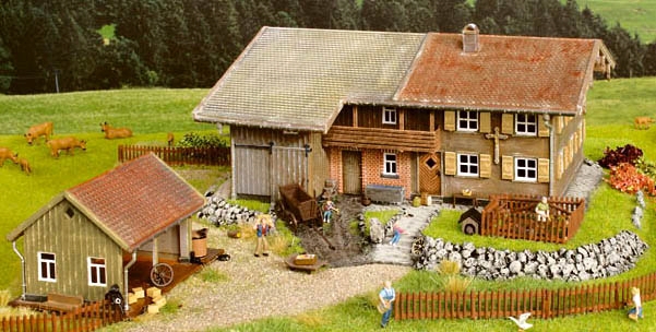Statek a kůlna jsou sestaveny, malovány a patinovány. Obsahuje: 6 postaviček, 14 hnědých krav, přes 15 ks příslušenství a 22 plůtků. Rozměry statku: 26 x 20,5 x 10 cm Rozměry kůlny: 9 x 6 x 5,4 cm.