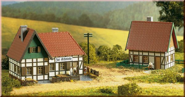 Vesnický hostinec s vedlejší budovou Laťkový plot,lavice,stůl. Rozměry: 100x82x60mm 92x59x60mm