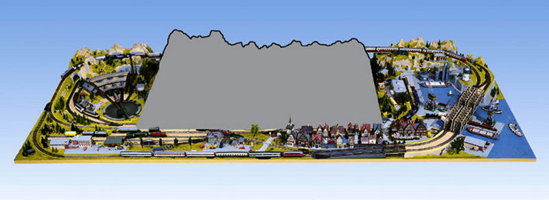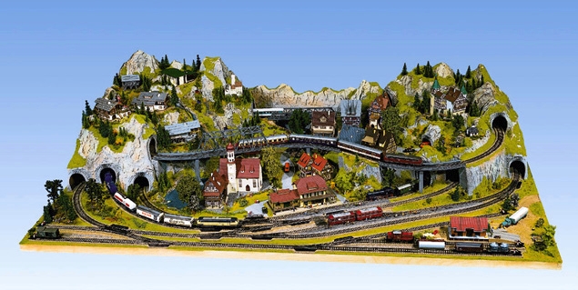 Hotový základ kolejiště a krajiny "Luzern" ručně omalovaný a zatravněný. Kolejiště dále obsahuje, mosty, tunely, naznačenou stopu pro kolejivo, dále kolejové plány. Rozměry : 220 x 140 cm. Vysoký cca 46 cm