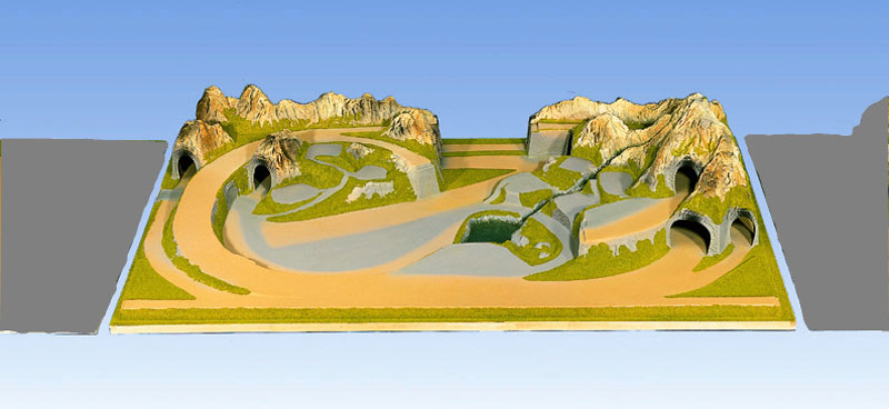 Jedná se o polotovar krajiny, který obsahuje kopce, skály, tunely a má naznačeny jízdní dráhy pro kolejivo.Krajina je hezky zpracována a na potřebných místech pokrytá