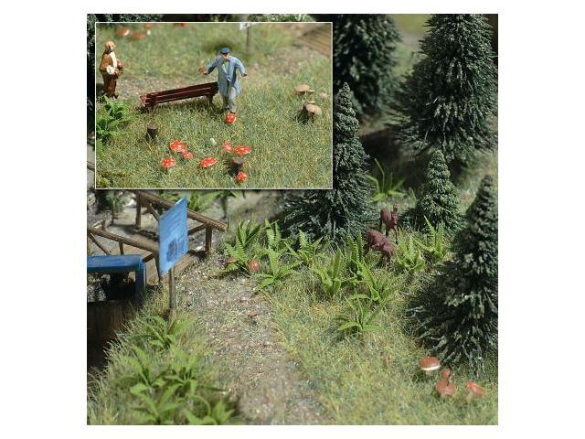 Kapradí a Houby Kapradí je ideální k ozelenění potůčků,lesních cestiček apod.Každá rostlina sestává z více listů typické kapraďové formy.Set obsahuje i houby-podborováky,jakožto i hřiby a muchomůrky. Obsah: cca 20 kapradí a 28 hub.