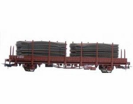 Nízkostěnný klanicový vagon ČSD 214-5 S nákladem armovací sítě. Kulisa na krátké spřáhlo.