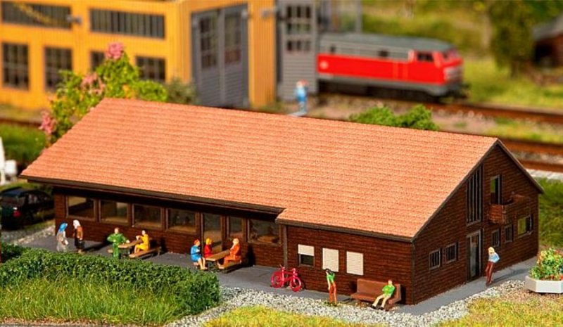 Stavebnice patinovaného modelu klubovny. Laser-cut technologie. Rozměr: 143 x 77 x 40 mm