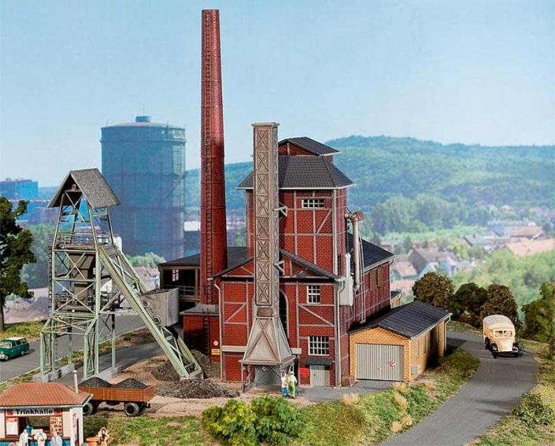 Stavebnice modelu budovy koksovny. Model Premium zahrnuje budovu kodsovny, boční boudu, samostatně stojící výtah k nakládce vytěženého koksu, bočního vysoký komín, pytel koksu, přívěs naložený s 2 přívěsy SC 100 (Viking) a spoustu dalších doplňků. Hlavní rozměry: 295 x 240 x 335 mm Bouda: 175 x 91 x 74 mm Výtah: 138 x 70 x 180 mm