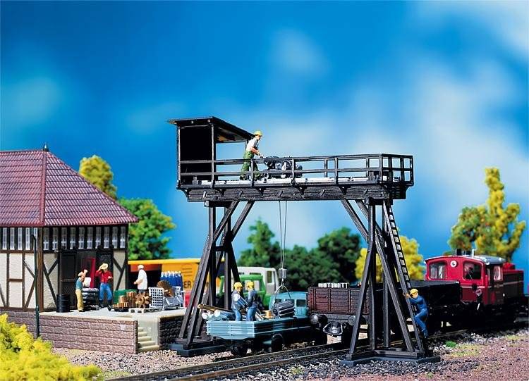 Stavebnice modelu jeřábu, dřevěná konstrukce.