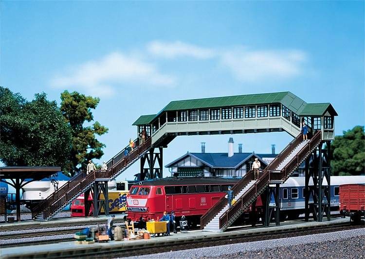 Stavebnice modelu nadchodu s otevřeným výstupem po schodech a uzavřeným přemostěním. Lze postavit v různých variantách. Lávka může vést až přes čtyři koleje.