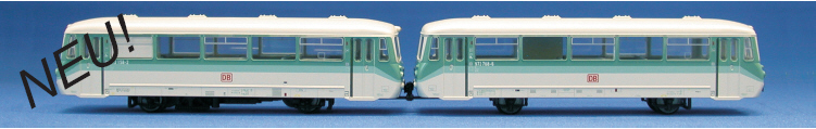Motorová jednotka řady LVT 772 + řídící vůz LVS 972, osvětlení u těchto jednotek přepíná dle jízdy, krémovozelený a to drah německých jedná se o nový nátěr na místo červenokrémových. délka:229mm.