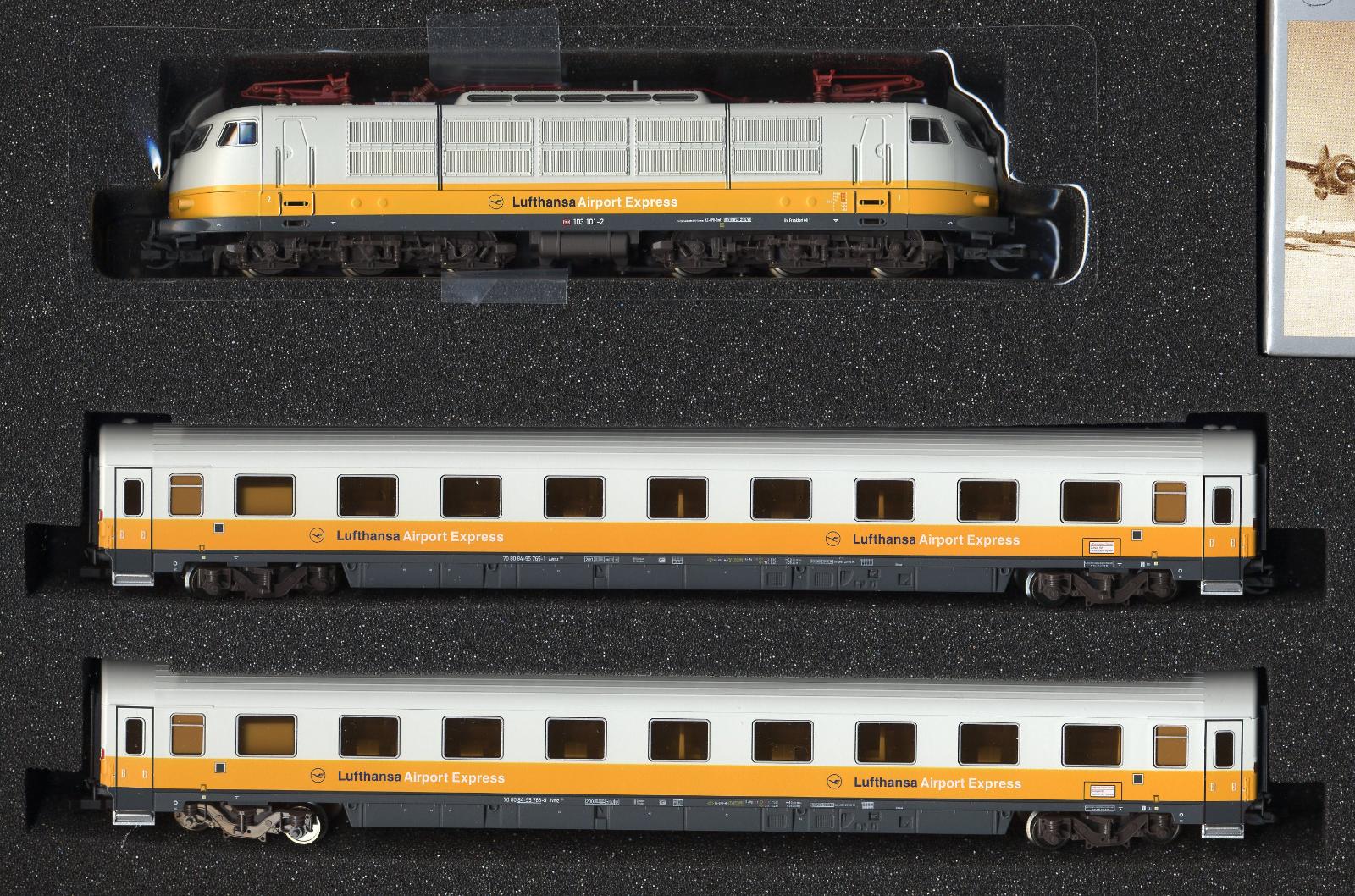 Limit set vyrobeno velmi malé množství firmou Tillig ve spolupráci Modellbahn manufktur Sebnitz v setu je Lokomotiva řada 101 + 2 rychlíkové vozy a letadlo vše v barvých Lufthansa skaldem pouze 1 kus v originál krabici stav nové