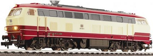 Lokomotiva BR 218 der WestFrankenBahn (DB-Regio) se zvukem!! Technické údaje:DCC + tvuk: ANO Osvětlení:ano dle jízdy bíle červeně Spřáhlo:šachta dle NEM Ano Délka: 189 mm