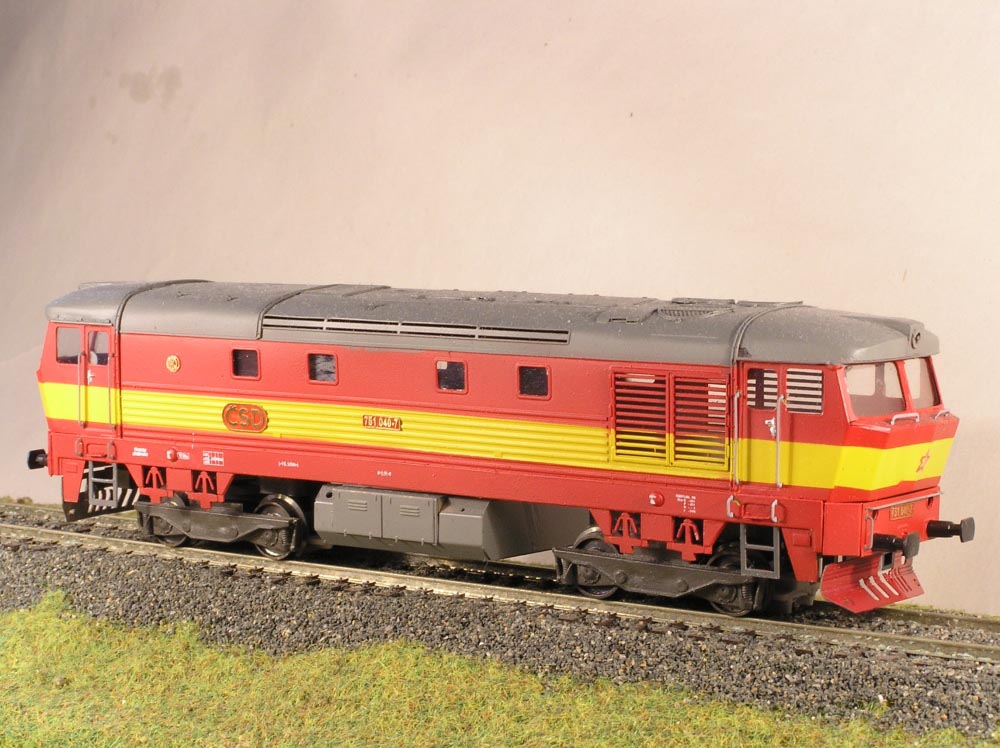 Maketa dieselové lokomotivy 751 040-7. Balení obsahuje ( karoserii s rámem v barvě, jako na obrázku i s popisy, masky podvozku, nádrž, nárazníky a drobné doplňky). Neobsahuje (motor, převody, podvozky, osvětlení, kola).