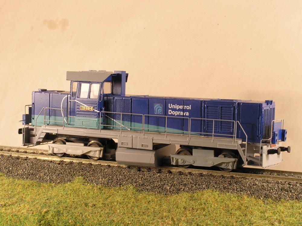 Maketa dieselové lokomotivy řady 729 610-6 ,,UNIPETROL". Balení obsahuje ( karoserii s rámem v barvě, jako na obrázku i s popisy, masky podvozku, nádrž, nárazníky a drobné doplňky). Neobsahuje (motor, převody, podvozky, osvětlení, kola).