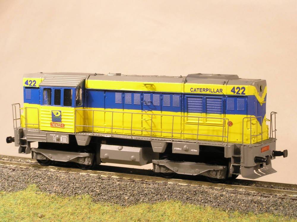 Maketa dieselové lokomotivy řady 740 422-1 ,,OKD". Balení obsahuje ( karoserii s rámem v barvě, jako na obrázku i s popisy, masky podvozku, nádrž, nárazníky a drobné doplňky). Neobsahuje (motor, převody, podvozky, osvětlení, kola).
