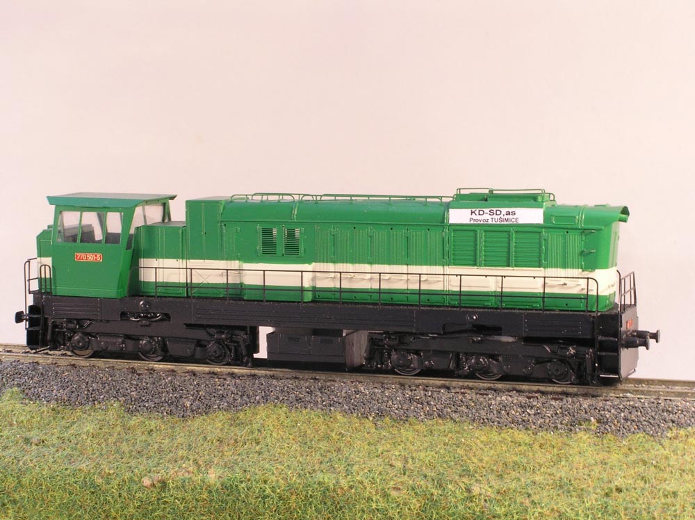 Maketa dieselové lokomotivy řady 770 501 -5. Balení obsahuje ( karoserii s rámem v barvě, jako na obrázku i s popisy, masky podvozku, nádrž, nárazníky a drobné doplňky). Neobsahuje (motor, převody, podvozky, osvětlení, kola).