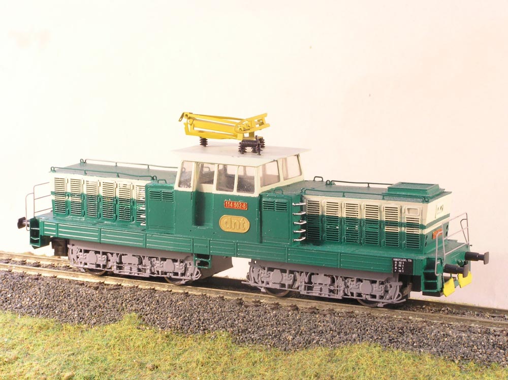 Maketa elektrické lokomotivy 114 502-8. Balení obsahuje ( karoserii s rámem v barvě, jako na obrázku i s popisy, masky podvozku, nádrž, nárazníky a drobné doplňky). Neobsahuje (motor, převody, podvozky, osvětlení, kola).