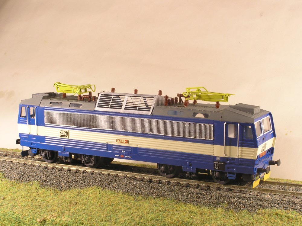 Maketa elektrické lokomotivy 363 014-2 drah ČD. Balení obsahuje ( karoserii s rámem v barvě, jako na obrázku i s popisy, masky podvozku, nádrž, nárazníky a drobné doplňky). Neobsahuje (motor, převody, podvozky, osvětlení, kola).