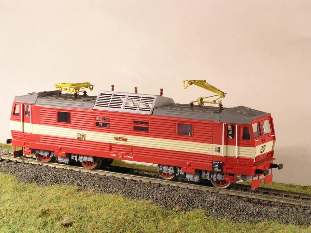 Maketa elektrické lokomotivy řady 371 002-7 dráha ČD.