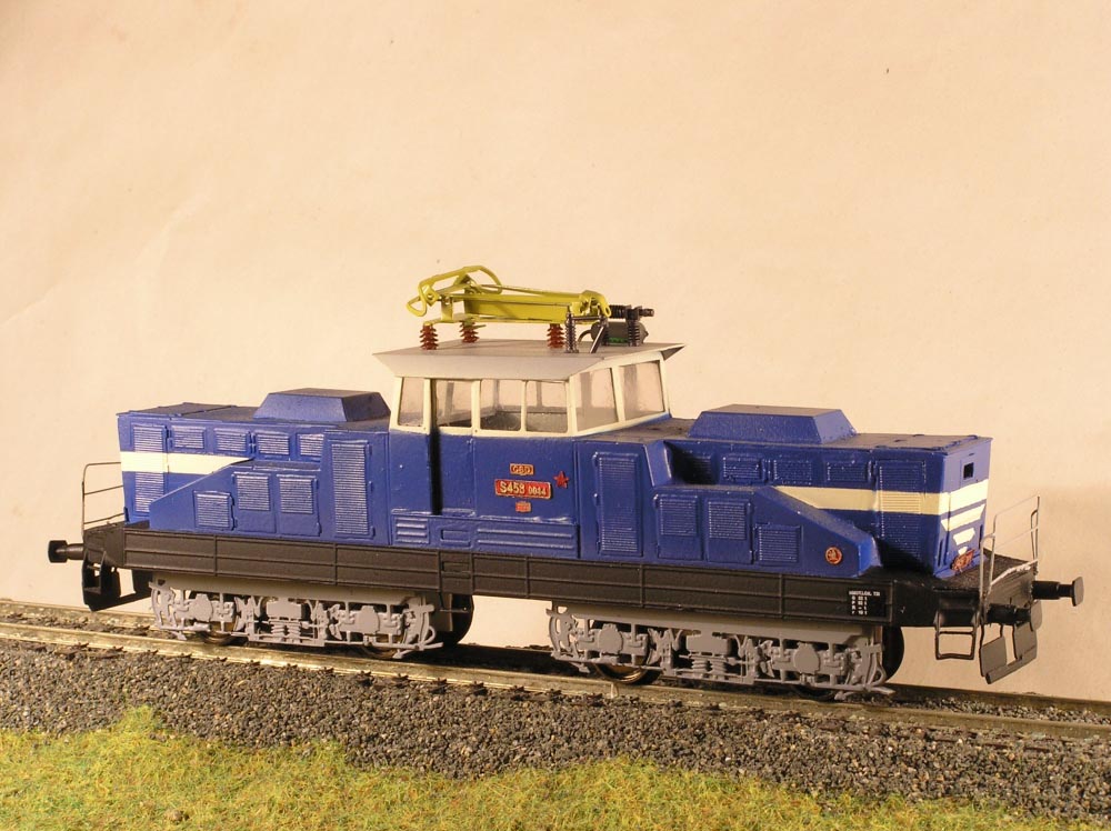 Maketa elektrické lokomotivy S458.0014 drah ČSD. Balení obsahuje ( karoserii s rámem v barvě, jako na obrázku i s popisy, masky podvozku, nádrž, nárazníky a drobné doplňky). Neobsahuje (motor, převody, podvozky, osvětlení, kola).