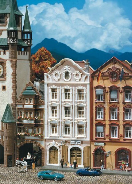 Stavebnice modelu městského domu. Rozměr: 112 x 52 x 121 mm