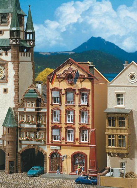 Stavebnice městského domu s vinárnou. Rozměr: 112 x 68 x 125 mm