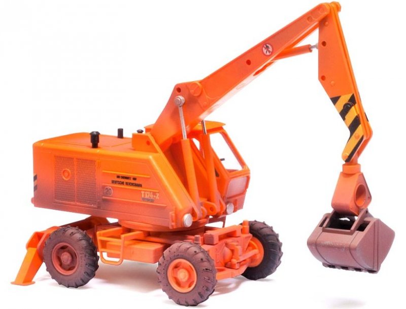 Model mobilního bagru T 174 - 2 v oranžové barvě.