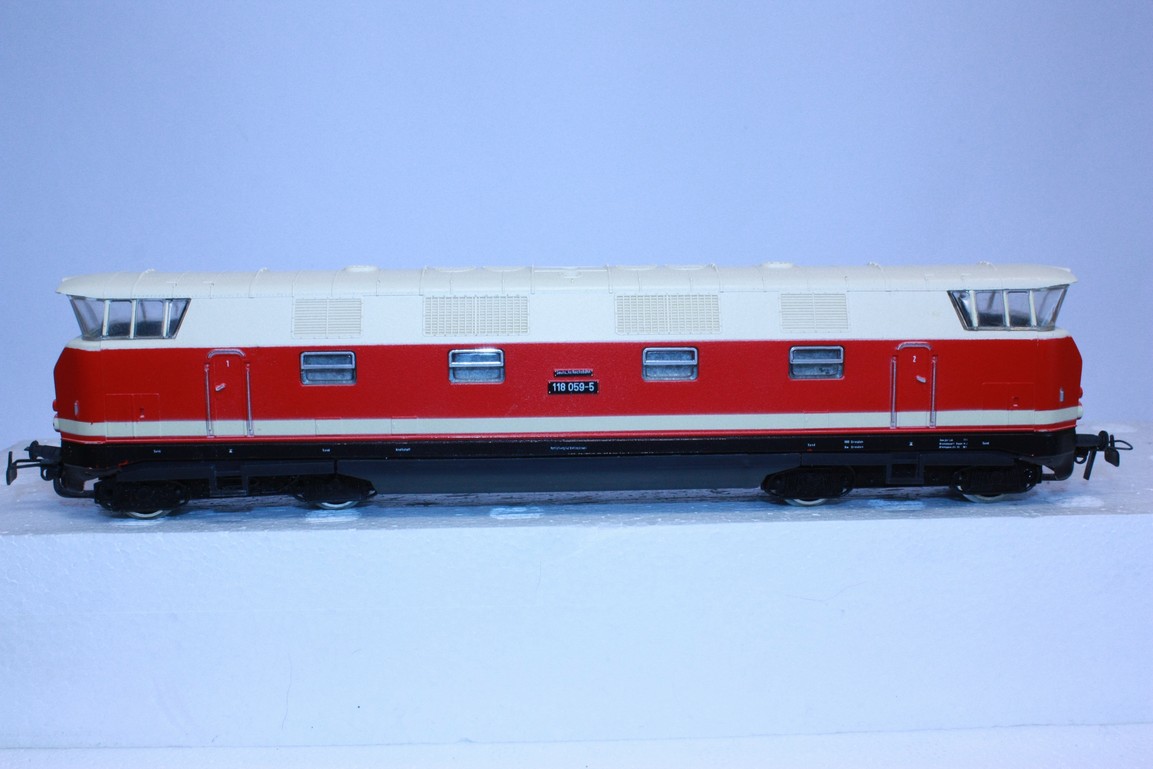 Model dieselové lokomotivy BR 118 DR, model je nepoškozen má náhradní obal, lokomotiva je osvětlena dle jízdy bez přípravy na DCC.