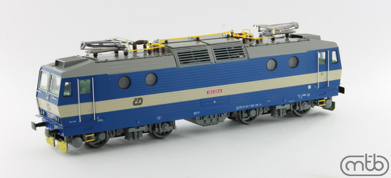 Elektrická lokomotiva řady 363 (ex. ES499.1), expedice unor 2016 Předloha modelu byla vyráběna ve Škodových závodech v Plzni v letech 1985-90 označených řadou ES499.3 s určením pro nákladní a osobní dopravu na el. sítích 3kV a 25kV. Celkem bylo vyrobeno 180ks lokomotiv 363. Lokomotivy tvoří základ přepravních kapacit u českých a slovenských železnic, část lokomotiv ř.163 přešla k nákladní přepravě ČD Cargo. Model je vybaven motorem se setrvačníkem, přepínatelným osvětlením dle směru jízdy, zvlášt zapínatelným reflektorem (pouze digitál), a možná změna jasu reflektoru přepínačem na DPS, osvětlením stanoviště strojvedoucího. Lokomotiva je vybavena rozhraním Plux22. K modelu jsou přibaleny doplňky (spřáhla, stěrače, hadice, háky) Délka 192 mm Hmotnost 560 g Min. poloměr oblouku 380 mm Osvětlení bílá/červená Digital ne, konektor Plux 22 Zvuk ne Počet hnaných náprav 4 Počet bandáž. náprav 0 Spřáhlo NEM šachta