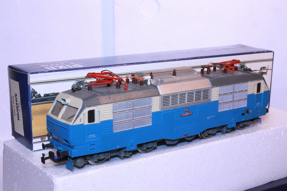 Model je poškozený, chybí díly horního vedení, jinak model jezdí. Funkční - ano Osvětlený - ne Originální krabička - náhradní
