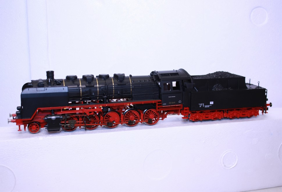 Model parní lokomotivy BR 50 původní cena 6700 Kč,lokomotiva je osvětlena dle jízdy a má přípravu na DCC je uložena v náhradním obalu.