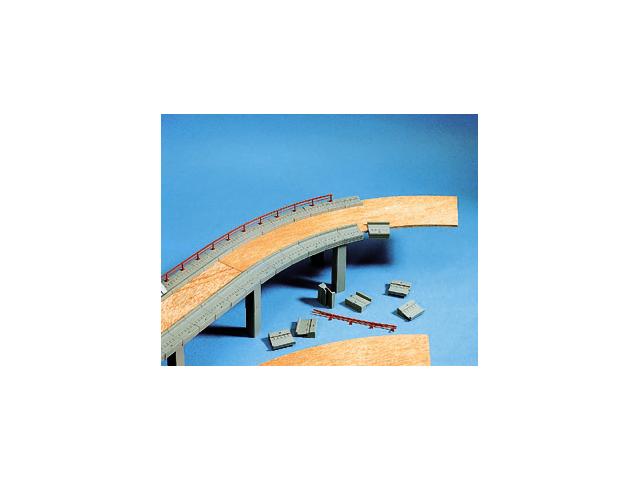 Pomocí těchto krytů si můžete postavit libovolný moderní most, také silniční nebo prodloužit pilířový most. Díly se jednoduše nasunou na dřevěné destičky, které tvoří samotnou jízdní dráhu. Pro vnější i vnitřní oblouk.