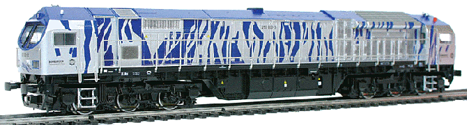 Motorová lokomotiva BOMBARDIER BLUE TIGER, POOLLOK. 3 bodé osvětlení přepíná dle jízdy, Nem: 651 Délka: 194 mm.