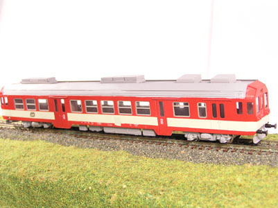 Maketa modelu motorového vozu 843 005-5. Jedná se o maketu bez motoru. Barva: červená-krémový pruh