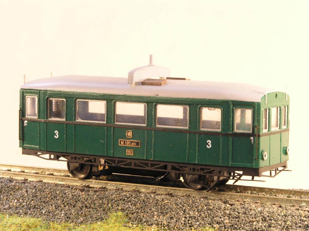 Kompletní model motorového vozu M120.201. Barva: tmavě zelená