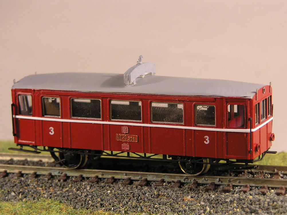 Kompletní model modelu motorového vozu M120.201. Jedná se o maketu bez motoru. Barva: červená