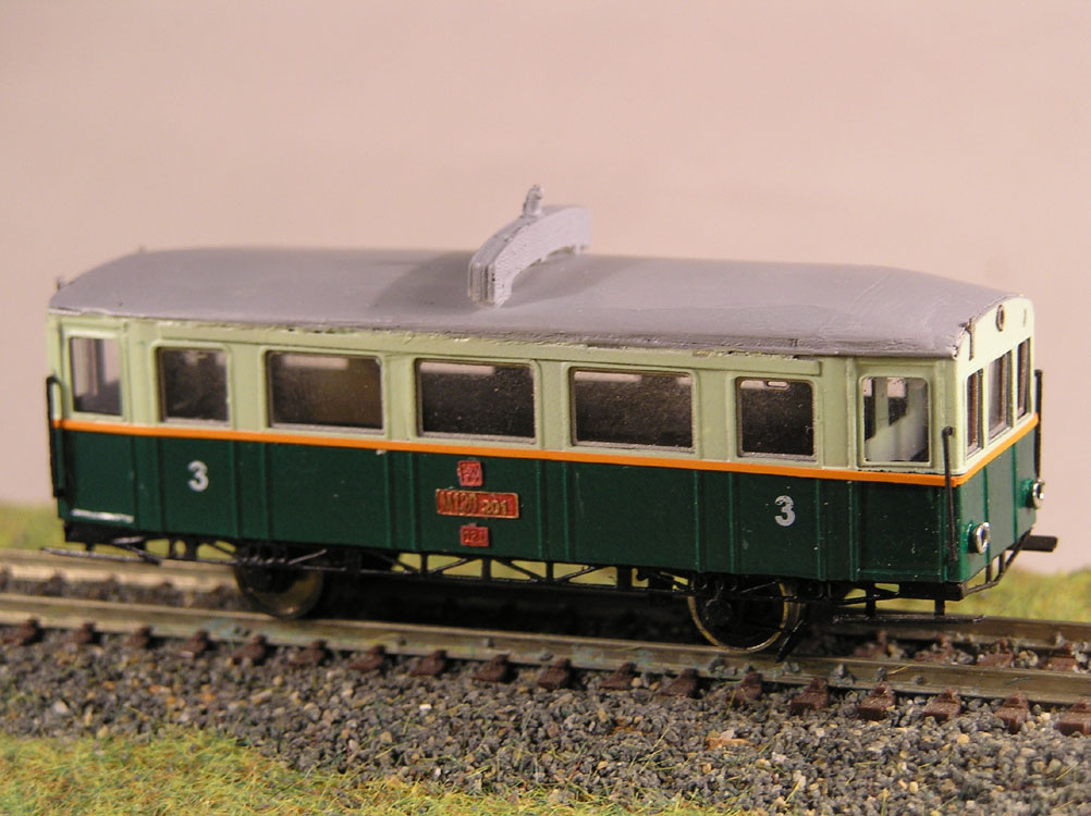Maketa modelu modelu motorového vozu M120.201. Jedná se o maketu bez motoru. Barva: tmavě/světle zelená
