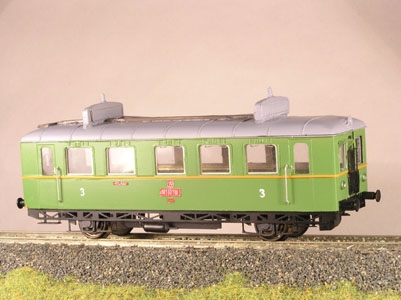 Maketa motorového vozu M130.168. Jedná se o maketu bez motoru. Barva: světle zelená