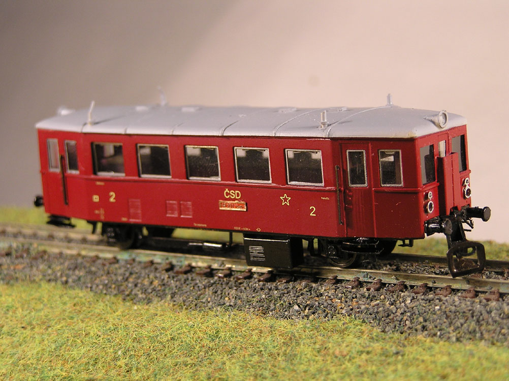 Maketa motorového vozu M131.1340. Jedná se o maketu bez motoru. Barva: červená-žlutý popis