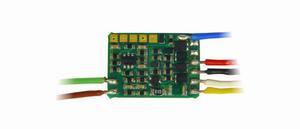 MX681 funkční dekodér 6 výstupůFunkční dekodér pro ovládání osvětlení a dalších funkcí v lokomotivě, řídícím voze nebo v osobních vagónech. Funkční výstupy mohou být směrově závislé. Dále je možné ovládat pomocí tohoto dekodéru 2 serva. Přidělení funkčních výstupů funkčním tlačítkům je samozřejmostí. Připojení pomocí vodičů